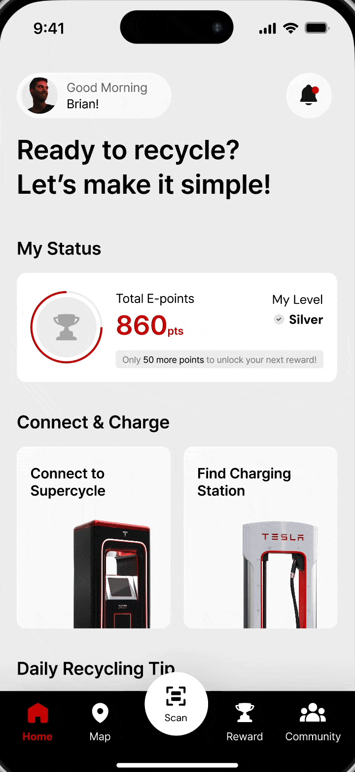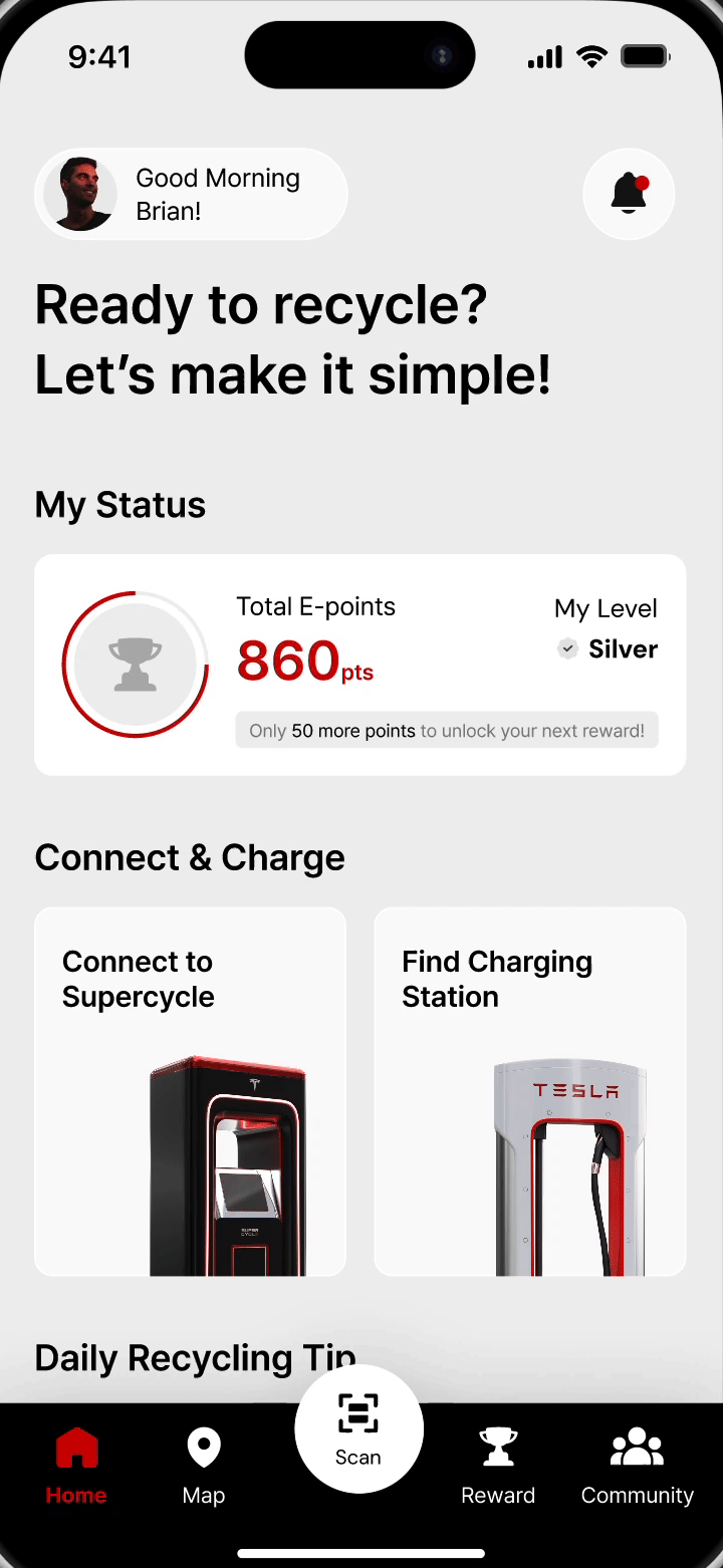 Supercycle is an innovative initiative that transforms Tesla’s global charging infrastructure into convenient access points where small electronic waste can be recycled conveniently while vehicles are being charged.